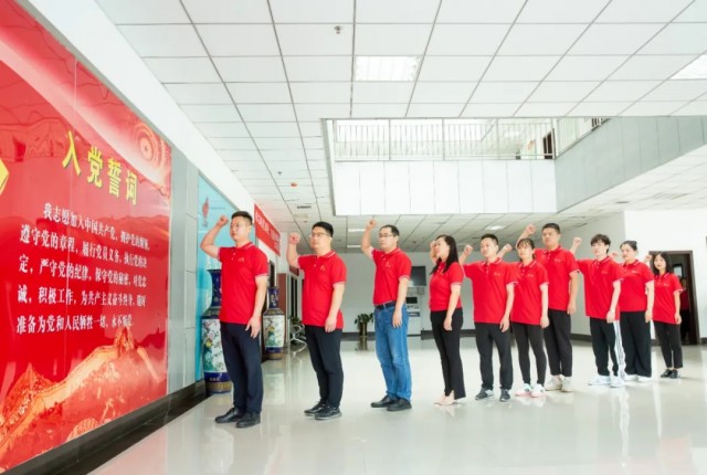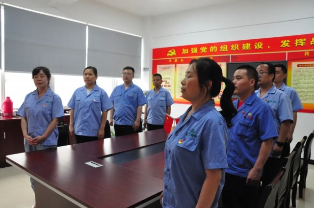 在董小輝的帶領(lǐng)下,全體黨員莊嚴(yán)舉起右手,重溫入黨誓詞,鏗鏘有力的聲音響徹云霄,心中的理想和信念更加堅(jiān)定。
