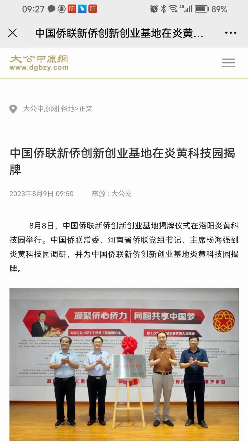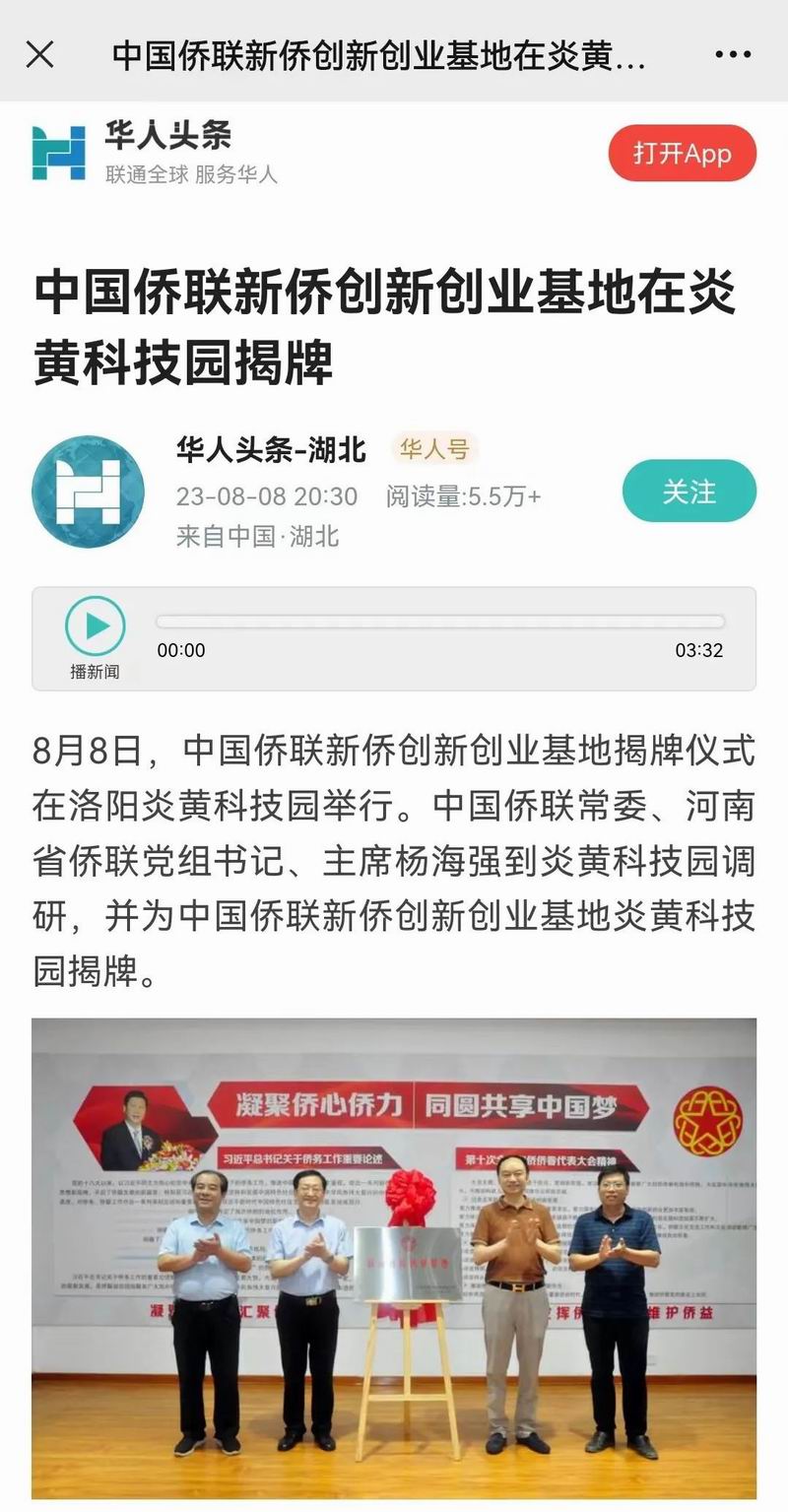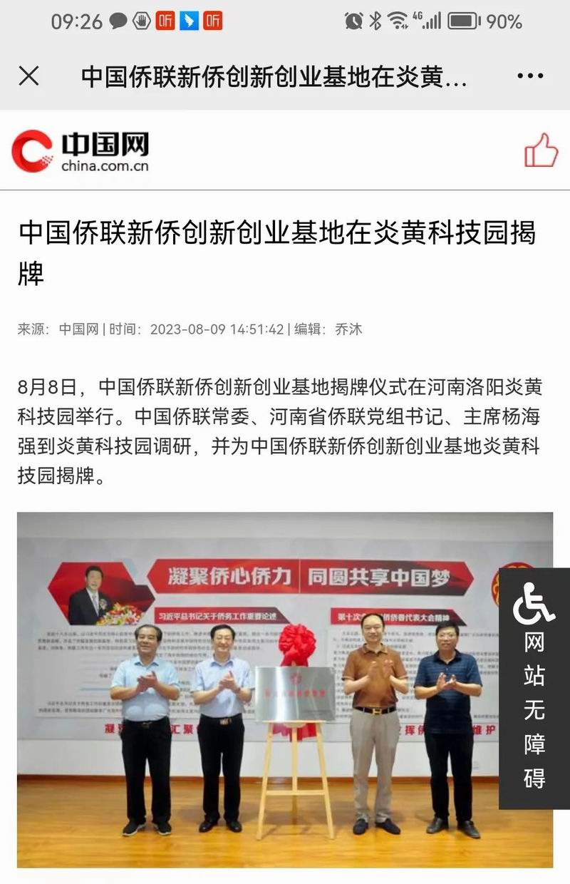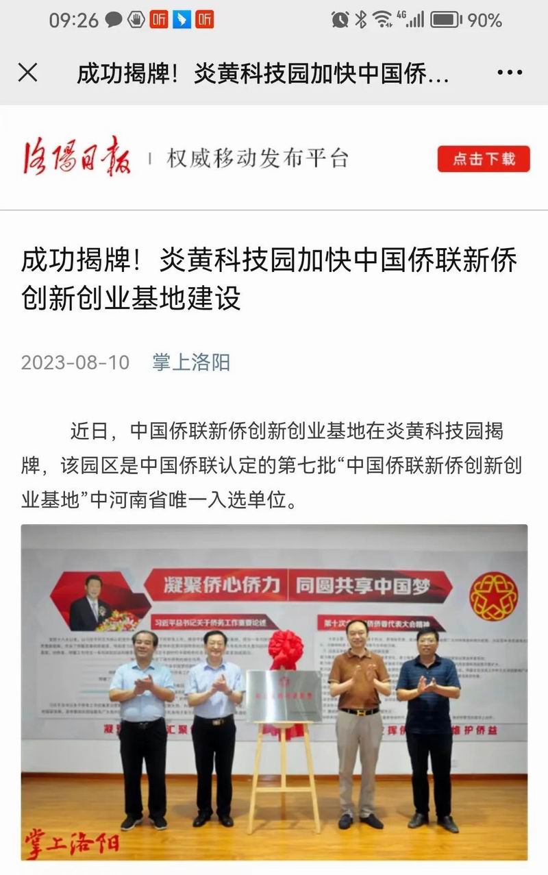 位于洛陽(yáng)市洛龍區(qū)的炎黃科技園,以為僑服務(wù)為宗旨,在園區(qū)打造關(guān)心、愛(ài)心、聯(lián)心、貼心和舒心的“為僑服務(wù)站”,受到各級(jí)僑聯(lián)組織的肯定和贊揚(yáng),被中國(guó)僑聯(lián)認(rèn)定為“新僑創(chuàng)新創(chuàng)業(yè)基地”。近日,中國(guó)僑聯(lián)常委、河南省僑聯(lián)黨組書記、主席楊海強(qiáng)到炎黃科技園調(diào)研指導(dǎo),為中國(guó)僑聯(lián)新僑創(chuàng)新創(chuàng)業(yè)基地炎黃科技園揭牌,引起了廣泛的關(guān)注。